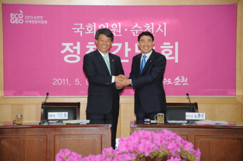 #김선동 순천 국회의원 당선자는 28일 "정치적 견해나 입장차를 떠나 2013순천만국제정원박람회의 성공을 위해 순천시 등과 적극 협력하고 역할을 다하겠다"고 말했다