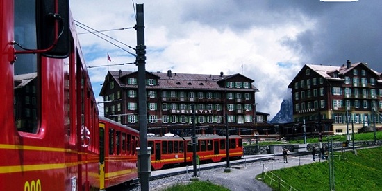 산 중턱에 마치 교통요지 처럼 몇 개의 철도선이 교차되고 다시 여기서 기차를 갈아타고 2개의 노선중 하나를 택해 융프라우를 올라 갈 수 있게 되어 있다. 그리고 역이 지나가는 곳곳에 숙박시설이 즐비하고 산을 깎아지른 듯한 계곡주변과 산에도 관광객들을 위한 숙박시설이 있다.
