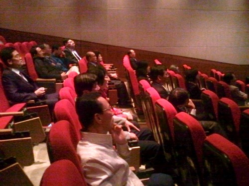 전남동부권 기독교계 주요 인사들과 참석자들이 7일 저녁 순천문화예술회관 소극장에서 '통영의 딸'사건의 당사자인 오길남 박사의 영상메시지를 듣고 있다.