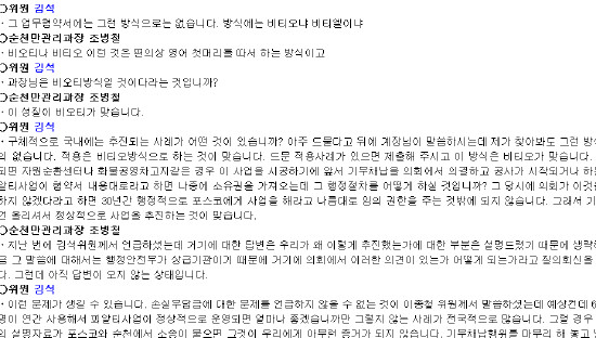 이밖에도 2011.5.25 순천시의회 문경위 회의록을 살펴보면, 당시 통합진보당 신화철 의원이 순천시와 포스코간 업무협약서 체결한 내용을 놓고 장영휴 과장과 토론한 내용도 있다. 이미 시의회 차원에서 협약서를 충분히 검토한 정황이 충분히 드러난 대목이다.