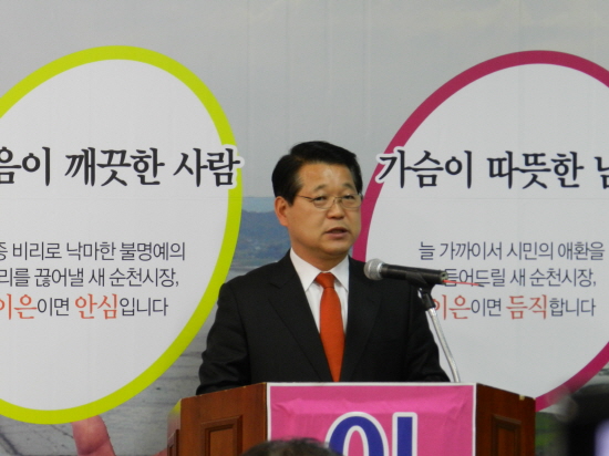 이은 예비후보는 인사말에서 "공직생활 30년 경험을 고향발전에 쏟아 붓기 위해 순천시장의 길을 걸어왔으나 특정세력의 정치테러에 의해 제거됐다"며 "이번 만큼은 부패세력에 맞서 청렴한 행정전문가를 뽑아 팔마정신을 되찾아야 한다"고 호소했다.