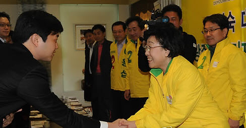 한명숙 민주통합당 대표가 27일 광주와 전남을 방문, 지지층 결집에 나섰다.