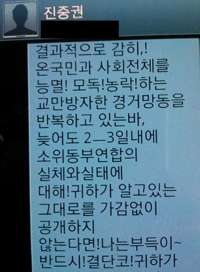 어제에 이어 오늘 오전까지 연이어 귀하에게 문자로 분명히 통보한바와같이 , 나는 이번 #경기동부 연합#인지 뭔지 하는 주사파 소굴 실체와실태 여부에 대한 소동을, 하늘이 두쪽나는 한이 있어도!결단코! 절대로! 수수방관-묵과하지 않을것이다.