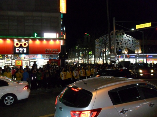 순천·곡성 선거구 국회의원에 출마한 민주당 노관규 후보가 6일 오후 7시 순천시 연향동 국민은행 사거리에서 노관규 후보 지지자 700여명이 모인 가운데 펼친 유세에서 "이번 선거에서 노관규를 지지해 달라"고 당부했다.