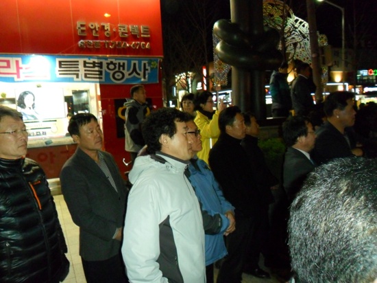 그 자리에 모인 노 후보 지지자들은 노 후보 연설마다 "노관규를 국회로" 라는 구호로 화답했다.
