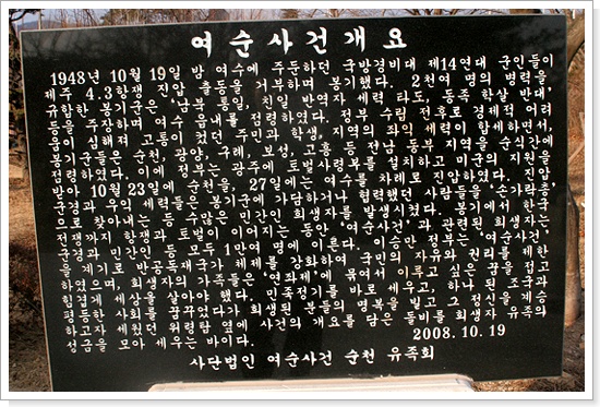 3년전 필자는 순천역판 여순사건 안내판의 좌편향 글의 문제점을 지적하며 여순사건 관련 역사적인식이 철저히 왜곡되고 좌편향 되었다고 주장했고, 결국 철도청장의 지시로 순천역 앞 안내판을 철거한 바 있다.