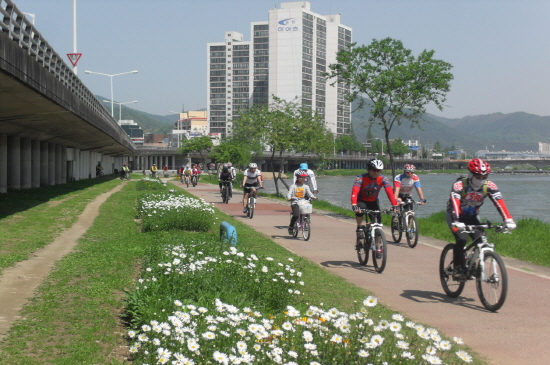 전국 자전거 거점도시 순천시가 정원박람회를 1년 여 앞두고 시민들의 자전거 타기 붐 조성을 위해 6일 동천수변공원에서 시민 자전거 대행진을 개최했다.