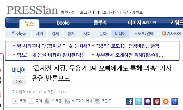 프레시안은 16일 ‘'김재철 사장, 무용가 J씨 오빠에게도 특혜 의혹' 기사 관련 반론보도’란 제목으로 정성남씨 관련 반론보도를 게재했다.