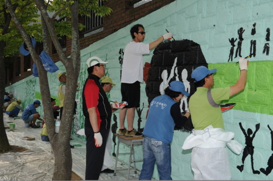 포스코가 학교폭력예방사업‘우리 학교는 친친 와이파이존”의 일환으로 포스코건설, 포스코 A&C, YWCA, 광영중학교 미술부 학생들과 함께 19일부터 3일간 광영중학교에서 ‘공간바꾸기 벽화작업’을 실시했다.