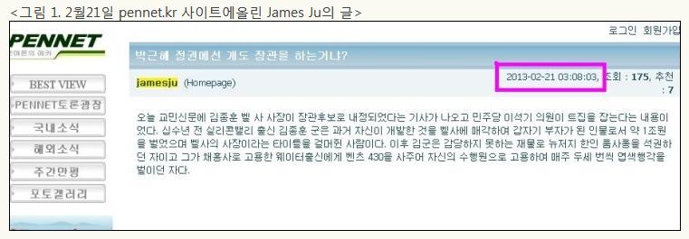① 2월 21일, 『pennet.kr』이라는 사이트에 이미 김 내정자 비방 글 최초로 올림