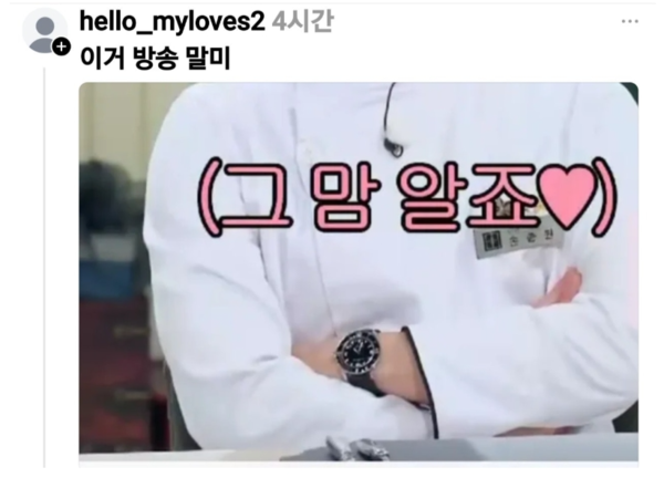 이재명 대통령의 지난달 28일, JTBC ‘냉장고를 부탁해’ 녹화가 대략 오후 1시부터 4시 30분까지 3시간 30분 동안 진행된 것으로 파악되었다. 이는 ‘냉장고를 부탁해’에 찍힌 방송 출연자의 시계를 분석한 루리웹 정치 사이트의 한 유저가 파악한 것이다.