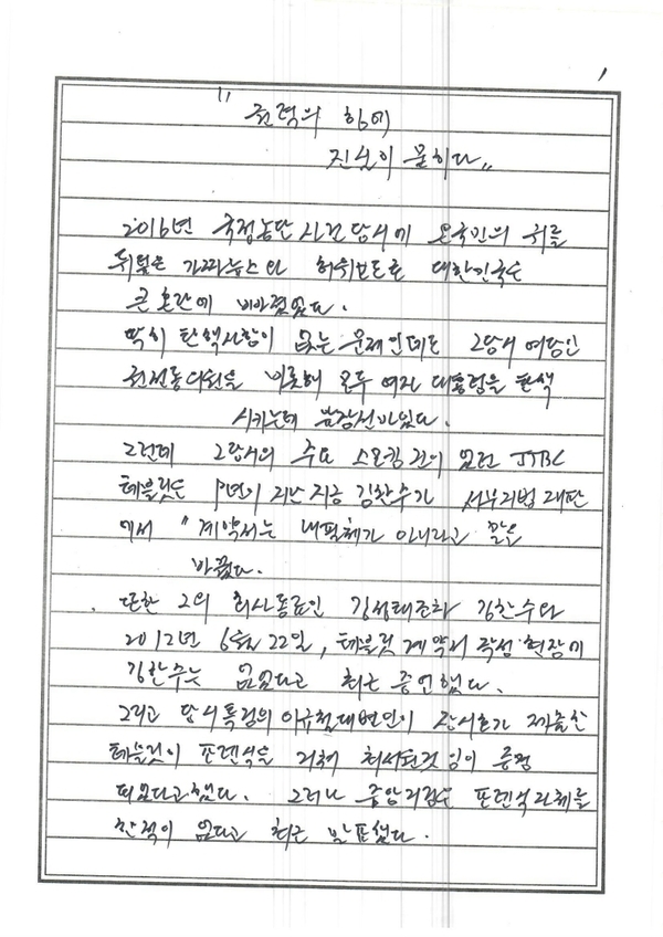 최 씨는 지난 6일 ‘권력의 힘에 진실이 묻히다‘라는 제목의 옥중서신을 통해 “재판에서 속속히 그 당시 위증이 나오고 결과과 뒤집히고 있어도 침묵하고 있다”며 이같이 말했다.