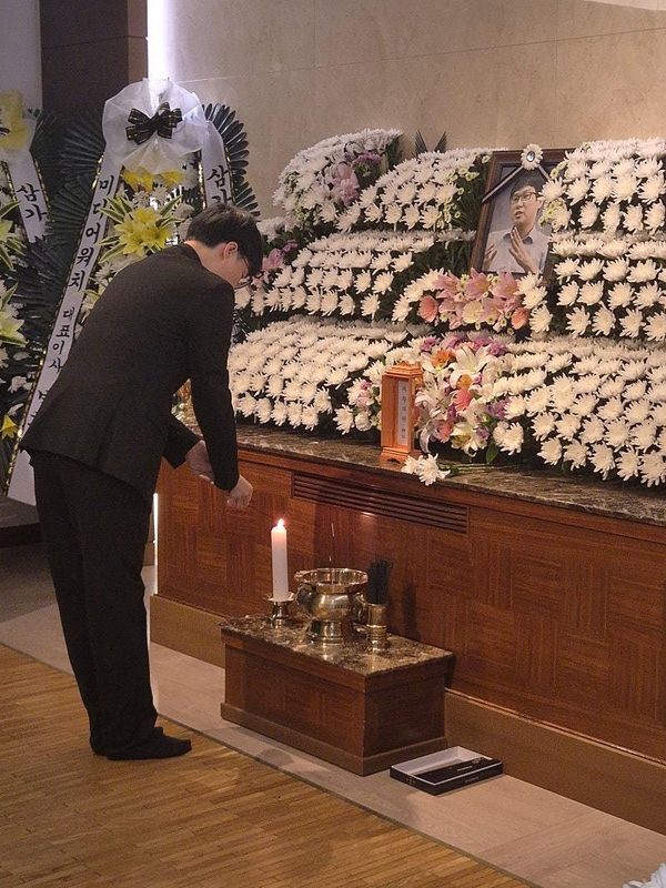 [포토] 고(故) 황의원 전 미디어워치 대표 빈소 조문하는 윤서인 작가