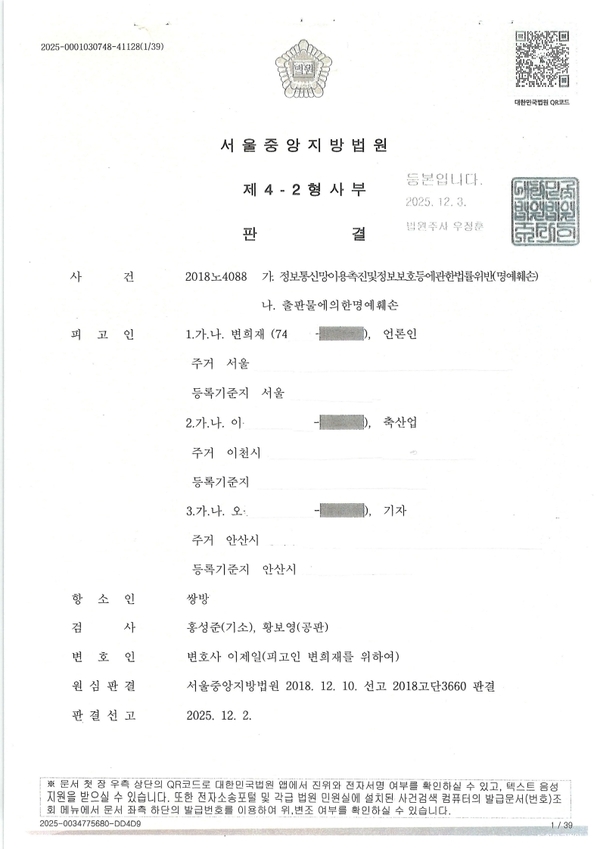 한편, 변희재 미디어워치 대표는 해당 재판부가 심 모 국과수 연구관, 김한수 전 청와대 행정관 등에 대한 증인 신청과 태블릿PC 이미징 파일 열람복사 결정을 철회한 것을 문제삼으며 판결에 불복해 상고장을 제출한 상태다.