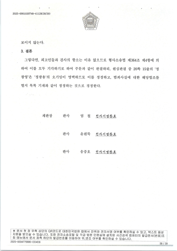 변 대표는 “이번 재판장이 부임한 후 첫 공판인 지난해 5월, 이동환 변호사가 태블릿PC 이미징 파일 제출을 요청하고 공판검사도 이를 허락했으나 이번 재판장이 이를 제지하고 심지어 채택된 심 모 국과수 연구관에 대한 증인도 철회했다”며 “즉 항소이유서에서 주장한 포렌식 내용을 입증하고자 했지만 이 기회를 박탈했다. 마음대로 판결문을 작성한 것”이라고 주장했다.