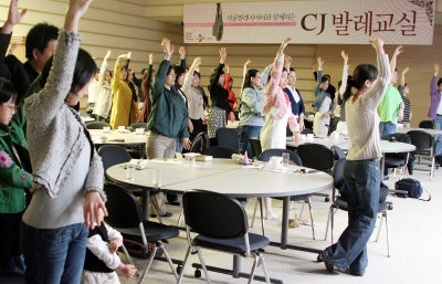CJ문화재단은 지난 4월 서울 발레시어터와 함께 '온가족이 즐기는 발레교실'을 진행했다. 서울 발레시어터 김인희 단장이 직접 일일 강사로 나서 80여명의 CJ 가족들과 즐거운 시간을 보냈다. 두 시간 동안 직원 가족들은 발레에 대한 이론을 배우고 간단한 발레 동작을 따라 했다.