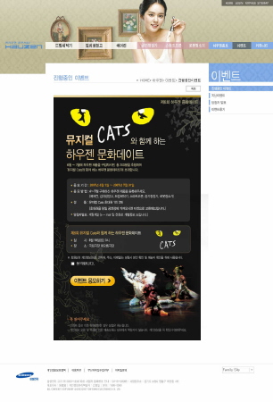 삼성전자는 다음달말까지 하우젠 브랜드를 구매한 고객 중 200명을 추첨, 뮤지컬 캣츠 공연 티켓을 제공하는 하우젠 문화데이트 행사를 갖는다고 5일 밝혔다.