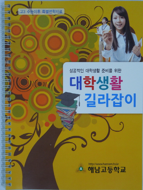 해남고등학교(교장 조태형)는 2013 대입수학능력시험 실시 이후 효율적인 교육과정 운영을 위한 방안으로 고3 수능 이후 특별면학자료 '대학생활 길라잡이'를 발간하여 활용함으로써 학생, 학부모들로부터 좋은 반응을 얻고 있다.