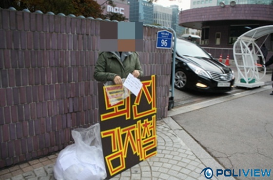 노조를 지지한다며 갑자기 등장한 ‘개념시민’은 이전에도 있었다. 지난 9월 김 사장이 업무 보고차 들른 방문진 건물 앞에서 한 남성이 김 사장 퇴진 후 생활비에 보태라며 저금통을 들고 돌발행동을 한 일이 있었다.