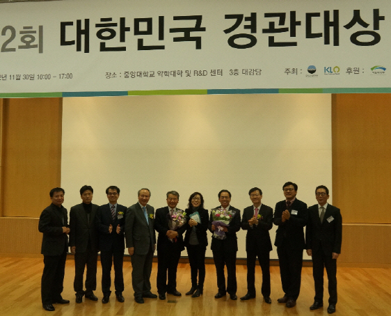 광주광역시(시장 강운태)가 30일 중앙대학교 대강당에서 열린 제2회 대한민국 경관대상 시상식에서 ‘대상’ 을 수상하고 대상 인증 동판을 수여받았다.