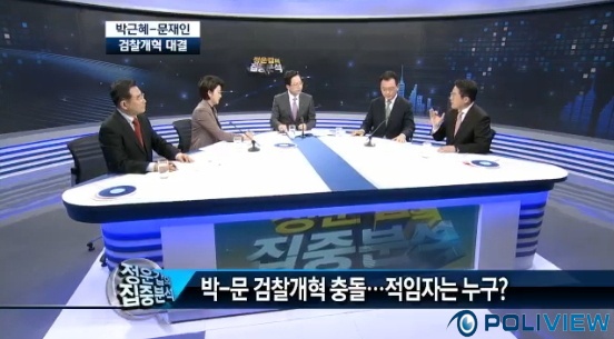 박상병 평론가는 “검찰개혁안 나온 게 이번이 처음이 아니다 수차례 나왔는데도, 안 된 것은 그동안 새누리당 박 후보가 미적미적 해오고 쇄신안에서도 검찰 개혁은 빠뜨리는 등 제대로 된 게 거의 없다”면서 “한상대 검찰총장 임명할 때 야당이 중립성을 이유로 반대했는데도 당시 한나라당이 청와대 입장에 동조했다. 이 부분에 대해선 새누리당의 책임이 분명 있다”고 지적했다.