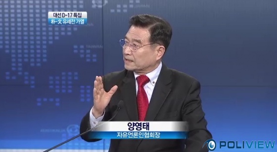 대선정국에서 각종 시사프로그램을 통해 큰 활약을 펼치고 있는 정치평론가 중 한 사람인 양영태 자유언론인협회장이 지난2일과 3일에도 채널A 뉴스A와 TV조선 뉴스와이드 ‘참’에 각각 출연해 대선분석을 이어나갔다.
