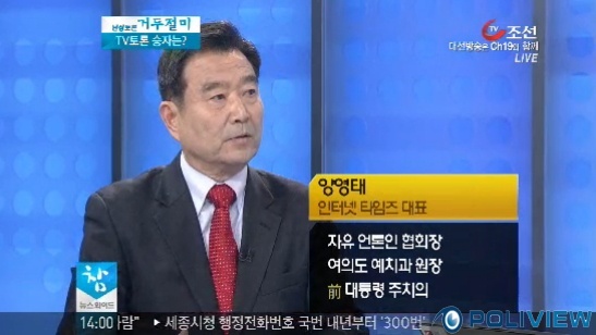 한편, 양 회장은 이날 TV조선 뉴스와이드 참 난상토론 코너에서도 전날 대선후보들의 토론회를 놓고 곽동수 숭실사이버대 교수와 토론을 이어갔다.