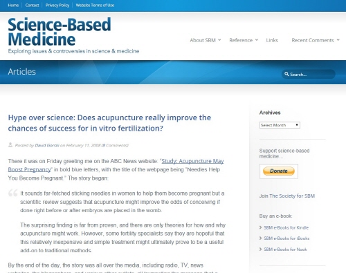 ※ 본 콘텐츠는 '과학중심의학연구원(http://www.i-sbm.org)'이 제공하는 공익콘텐츠입니다. 이번 글은 미국의 사이언스베이스드메디슨 블로그의 편집인이자 의사인 데이비드 고스키(David Gorski)의 글 'Hype over science: Does acupuncture really improve the chances of success for in vitro fertilization?'를 번역한 것입니다. 과학중심의학연구원 서범석 특보가 번역했으며, 과학중심의학연구원 황의원 원장이 편집했습니다.