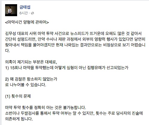 김무성 대표의 사위 마약 투약 사건으로 뉴스피드가 뜨거운데 오해도 많은 것 같아서 간단히 설명드리면, 만약 수사나 재판 과정에서 외부의 영향력 행사가 있었다면 당연히 찾아내서 책임을 물어야겠지만 현재 나와있는 결과만으로는 비정상으로 보기 어렵습니다.