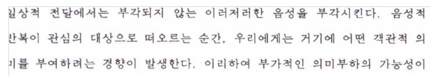 “음성적 반복들이 시인의 관심의 대상이 되는 순간부터, (그 음성적 반복들에) 어떤 객관적 의미를 부여하려는 경향이 발생한다.”