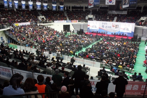 대선 유력주자로 급부상중인 장성민 전 의원의 역저<중국의 밀어내기 미국의 버티기><큰 바위 얼굴> 북콘서트가 17일 오후 2시 서울 장충체육관에서 3만여명의 지지자들이 참석한 가운데 성황리에 열렸다.