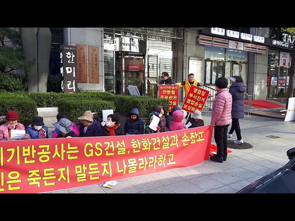 신림동 일대 지역민 30여명은 24일 오후 서울 무교동 서울시 도시기반시설 본부 앞에서 소음·진동 피해가 속출하고 있음에도 불구하고 발주처인 서울시가 GS건설의 지하터널 공사과정에서 발생하는 발파행위를 수수방관하고 있다고 주장하며 강력한 투쟁을 예고했다.