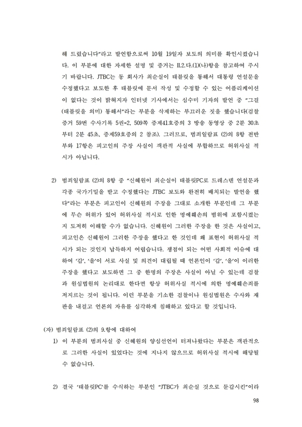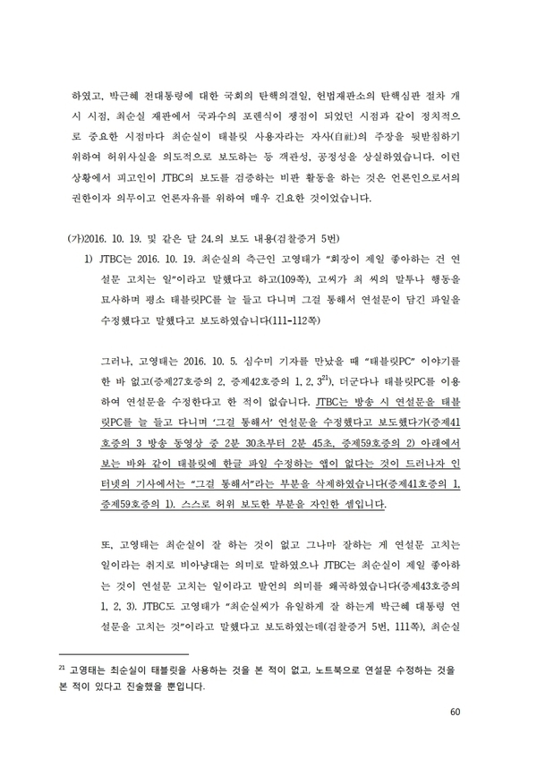 [차기환 변호사 태블릿재판 항소이유서<전문>] “JTBC·검찰, 태블릿의 내용, 시스템파일, 계정 등 조작의혹”