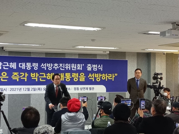 박근혜 대통령의 조속한 석방을 위한 가칭 ‘박근혜 대통령 석방추진위원회(위원장 이규택, 이상 추진위)’의 발족식이 2일 오전 11시, 서울 정동 상연재 별관에서 성황리에 열렸다.