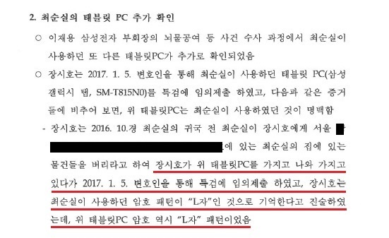 장시호 씨가 작년에 최서원 씨와의 ‘제2의 최순실 태블릿’ 반환소송 1심 선고를 앞두고 과거 장 씨의 태블릿 수사를 담당했던 윤석열·한동훈 특검의 박주성 검사(現 인천지검 2차장검사)와 연락을 주고받았다는 의혹이 제기됐다.