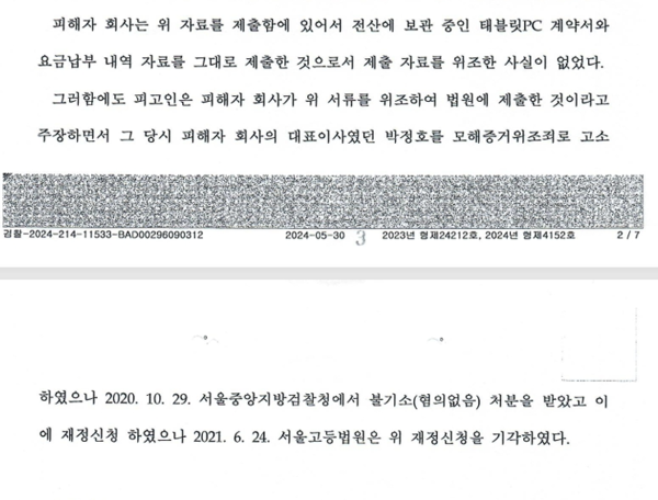 다만 검찰은 변희재 대표가 SKT 박정호 대표이사를 계약서 위조혐의로 고발한 사건에 대해 서울중앙지검이 2020년 10월 29일자에 내린 불기소 처분을 주요 근거로 내세웠다. 해당 사건은 박정호 대표이사 뿐 아니라 김한수, 김용제, 김종우, 강상묵 등 검사 3인을 동시에 고발한 사건이었다.