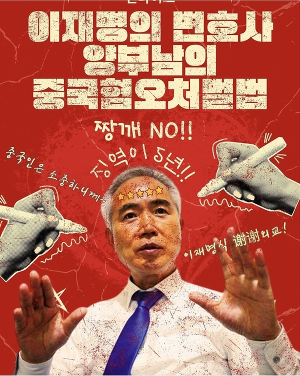이어 "이재명의 씨에씨에(谢谢)외교를 총대메고 실천하며 중국인을 위해 자국민 처벌하는 법안을 발의 하여 물의를 빚고 있다"고 지적했다.