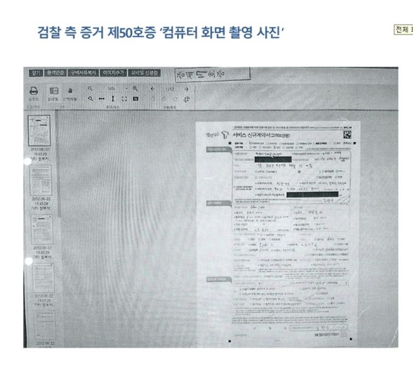 SKT 측은 고객서버 컴퓨터 화면에 태블릿 신규계약서를 띄워놓고 좌측 화면에 2012년 6월 22일 날짜를 표기한 증거자료를 검찰에 제출했다.