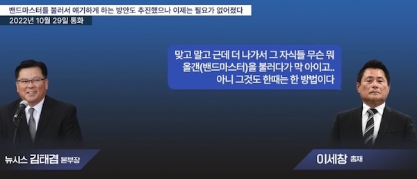 이세창이 성명서만 낭독하고 빠졌다고 하자 김태겸은 "잘하셨네요. 계획 잘하셨네요"라고 평가했다. 전면에 나서지 말고 로우키로 대응하라는 조언이었다. 언론사 간부다운 판단이었다. 여론이 잦아드는 국면에서 굳이 긁어 부스럼을 만들 필요가 없다는 것이다.