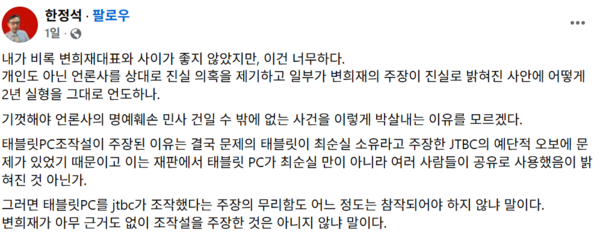 한정석 전 KBS PD는 “내가 비록 변희재 대표와 사이가 좋지 않았지만 이건 너무하다”며 “기껏해야 언론사의 명예훼손 민사 건일 수 밖에 없는 사건을 이렇게 박살내는 이유를 모르겠다”고 평가했다.