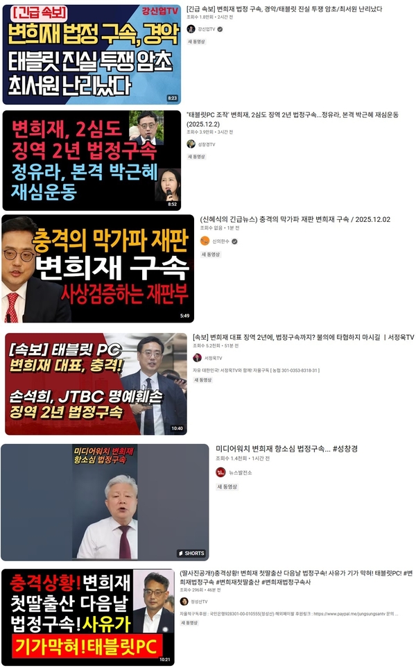 한편, ‘신의한수’, ‘서정욱TV', '성창경TV', '강신업TV', '정성산TV', '빵시기TV', '이병준TV' 등 우파 유튜버들도 변 대표의 구속소식을 알리며 변 대표에 대한 구속이 부당하다는 취지의 방송을 진행했다.
