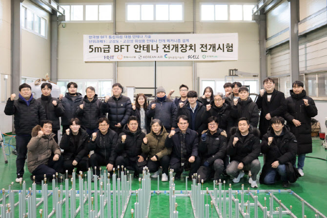 대한항공이 국방기술진흥연구소(국기연)와 손잡고 위성 탑재용 대형 안테나 전개 시스템 개발 시험에 성공했다.