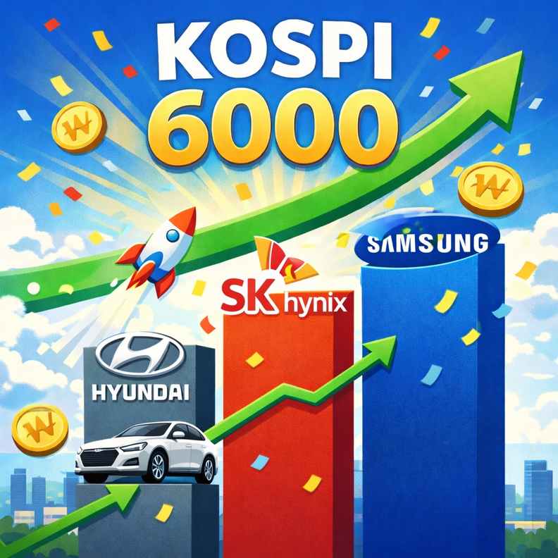 인싸잇=유승진 기자 | 코스피가 사상 처음으로 6000포인트를 돌파했다. 코스피 상승에 대장주인 삼성전자와 SK하이닉스, 현대차도 이날 최고가 경신 행진을 이어가고 있다.