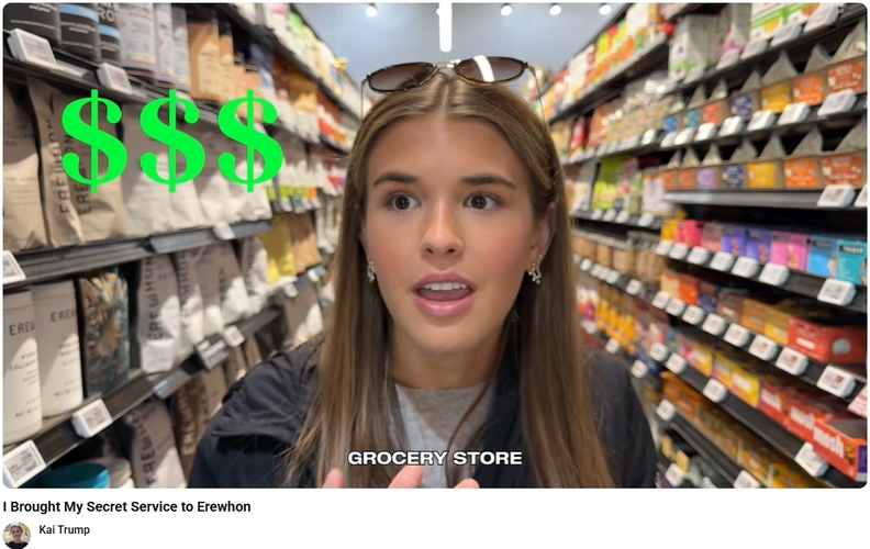 카이 트럼프는 영상 제목부터 ‘나는 에러헌에 나의 비밀 경호원을 데리고 왔다(I Brought My Secret Service to Erewhon)’고 기재했고, 실제로 비밀 경호원이 동행하며 그의 영상 촬영을 도운 것으로 나타났다.