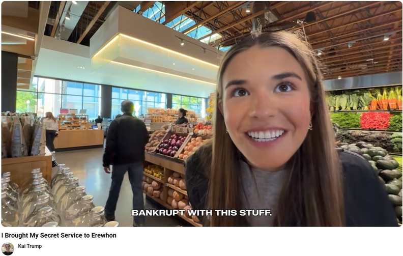 9일(현지시간) 카이 트럼프는 자신의 유튜브 채널에 로스앤젤레스의 고급 유기농 마켓인 ‘에러헌’(Erewhon)에 처음 방문해 쇼핑하는 브이로그 영상을 게재했다.