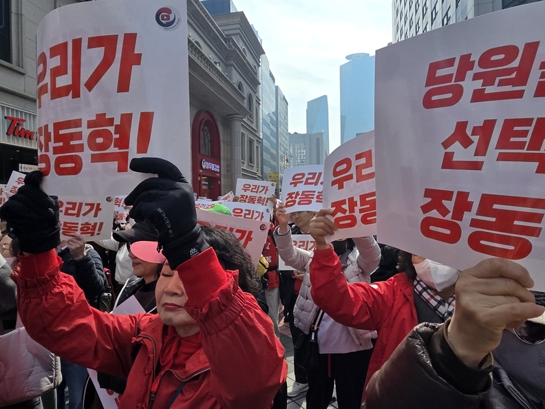 인싸잇=백소영 기자 ㅣ 6.3 지방선거를 앞두고 국민의힘 내부 갈등이 이어지는 가운데 국민의힘 당원들과 자유우파 시민들이 장동혁 지도부에 힘을 싣는 집회를 열었다.