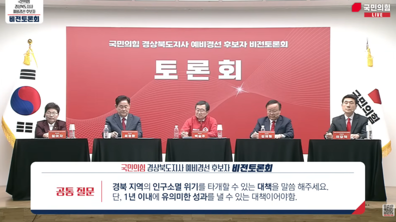 실제로 국민의힘의 ‘경상북도지사 예비경선 비전토론회’에서 ‘경북 지역 인구 소멸 위기 해법’을 중심으로 청년 유출·일자리·정주 여건 개선 등 지역 현안이 공통 의제로 제시됐다.
