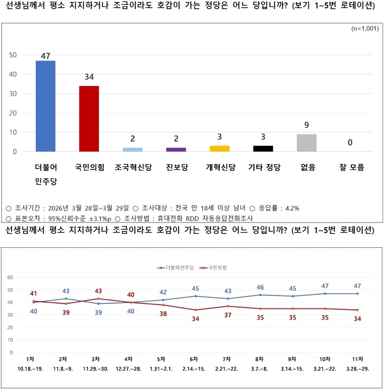 해당 정당 지지도 조사 응답률은 표본오차 95% 신뢰수준에 ±3.1%p, 응답률은 3.9%였다.(자세한 내용은 중앙선거여론조사심의위원회 홈페이지 참조)