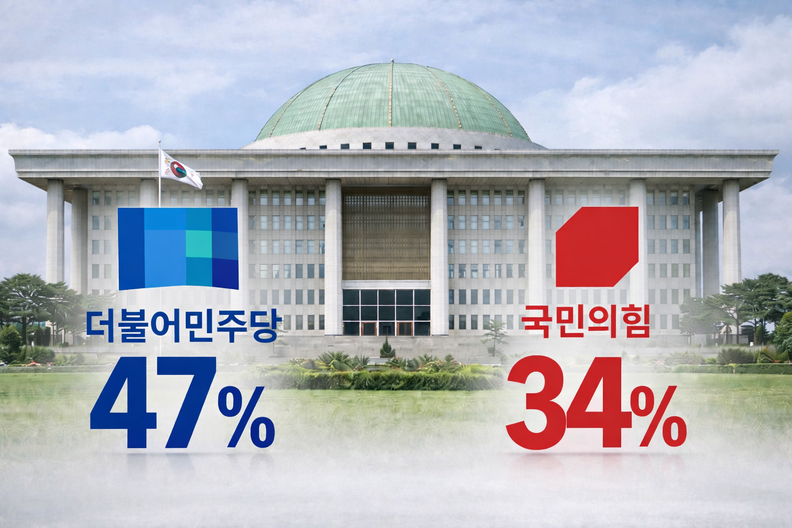 양당은 직전 조사(민주당 47.6%·국민의힘 31.9%) 대비 소폭 올랐으나 격차는 더 커진 것으로 전해진다.