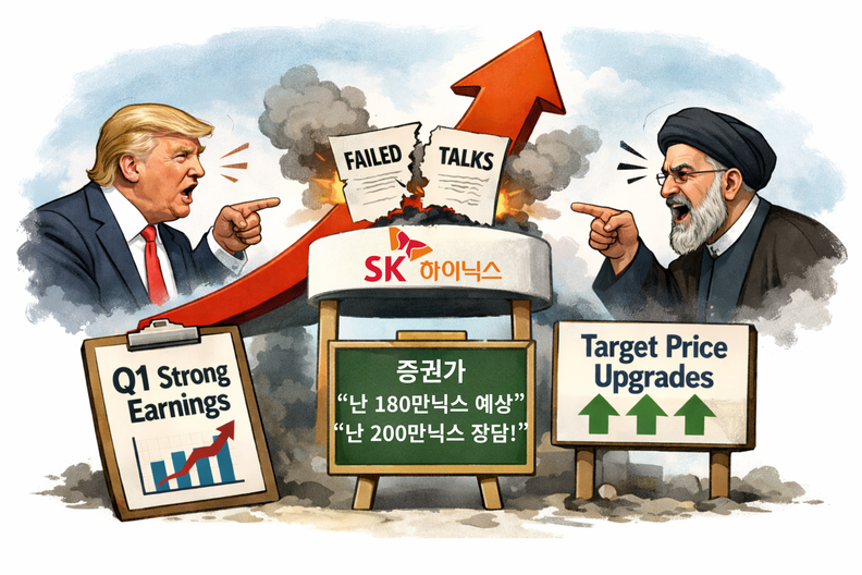 인싸잇=한민철 편집국장 | 미국과 이란의 종전 협상 결렬로 국내 증시가 타격을 받을 것으로 예상되는 가운데, 올해 1분기 호실적 달성 전망과 증권가의 목표주가 상향 움직임이 SK하이닉스의 주가 하락을 막고 있는 모양새다.